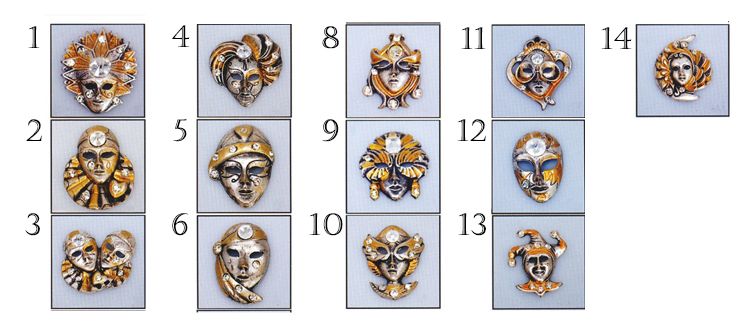Tutti i nostri prodotti con MASCHERINE sono disponibili nelle varianti riportate qui sotto. Possono essere ordinati scegliendo le varianti numerate oppure assortiti.